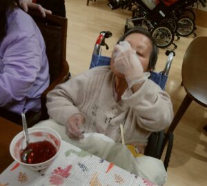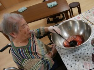 作業は利用者様と一緒に行い、「もう少しクリームのせようか?」「上手にできたね」と声を掛け合いながら、和やかな時間が流れます🌼