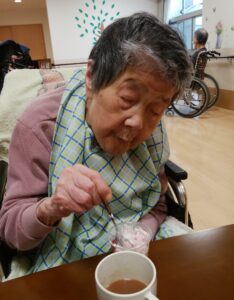 完成したゼリーを前に、「食べるのがもったいないね」と話しつつも、一口食べると「おいしい!」と嬉しい声があちらこちらから聞こえてきました😋